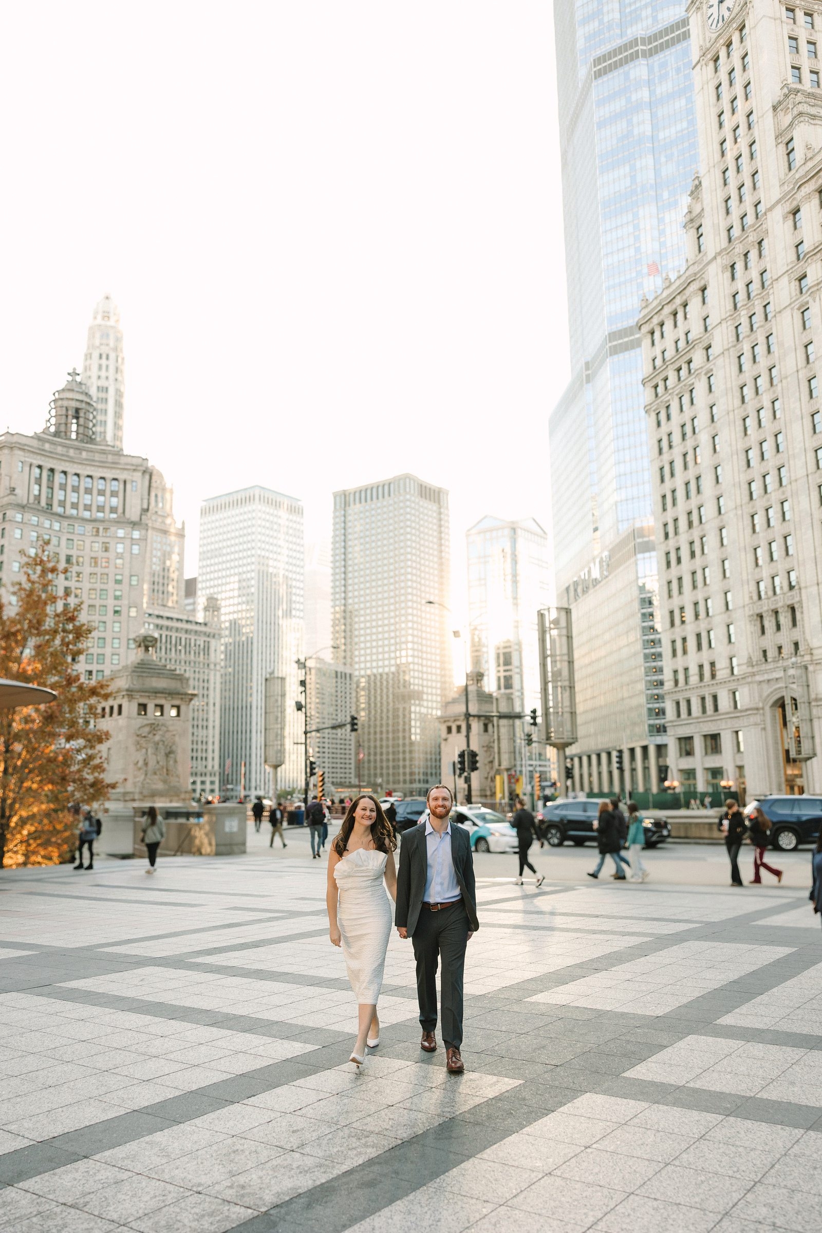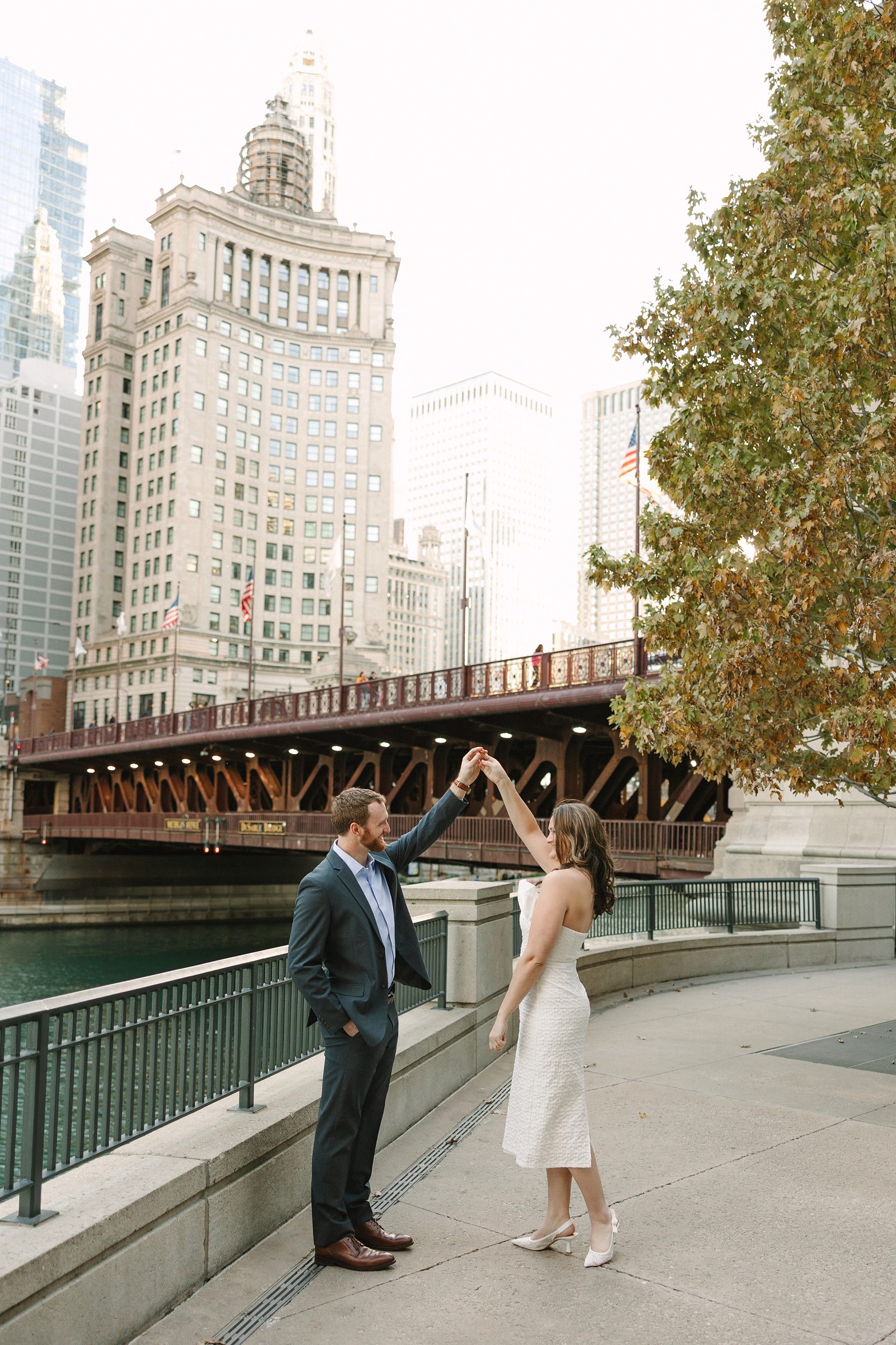 Then we hopped over to the Chicago Riverwalk and got the best of that iconic downtown energy… sparkling water, the hum of the city, sunset glow bouncing off the buildings…all while Kaitlyn and Nathan radiated pure joy!!! Chicago + these two = vibes.