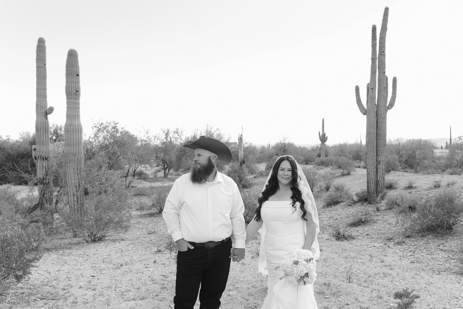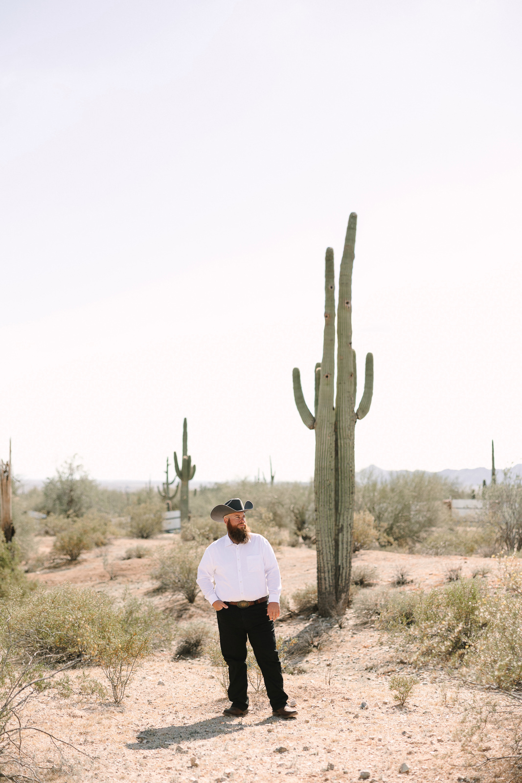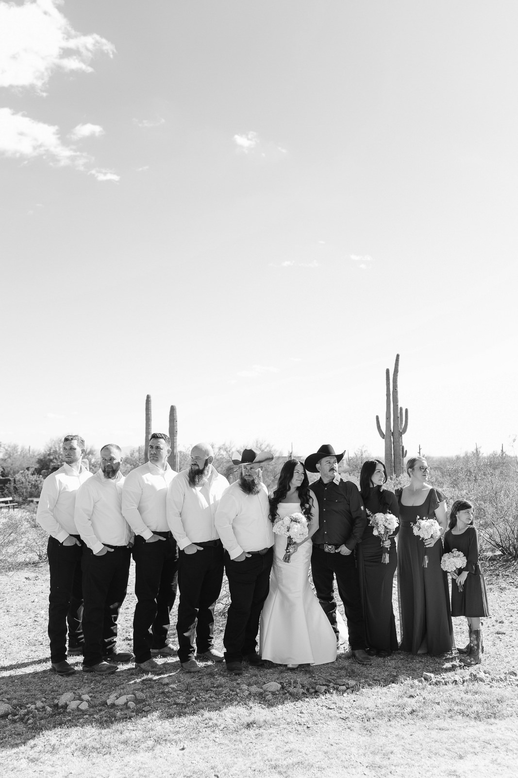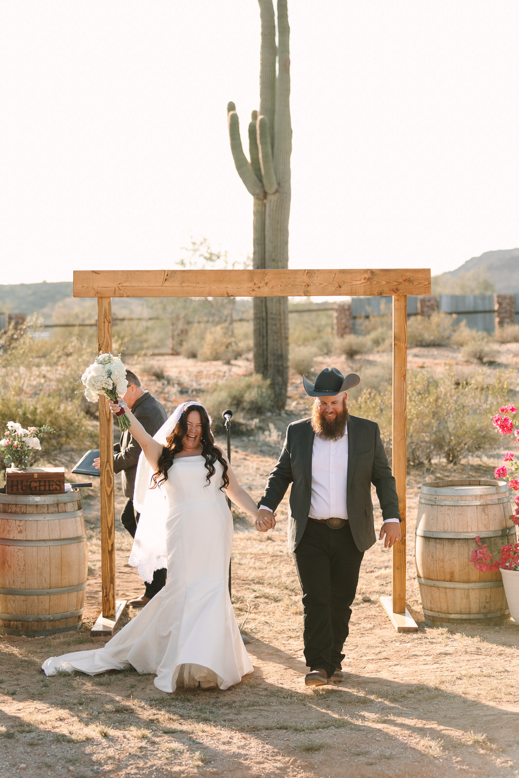 The vibe was 90s western romance meets desert elegance. Cowboy touches layered with softness. Golden light spilling across the landscape. A private estate tucked into the Arizona desert that felt intimate and personal. It was effortlessly cool and deeply sentimental all at once — the perfect balance of classic love story and cowboy charm.